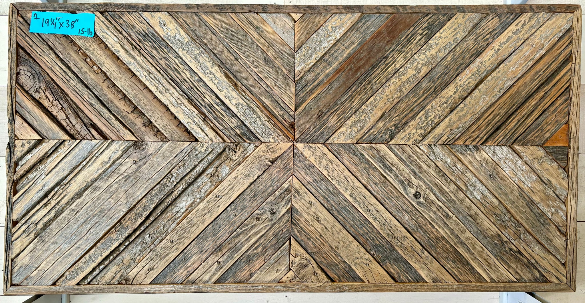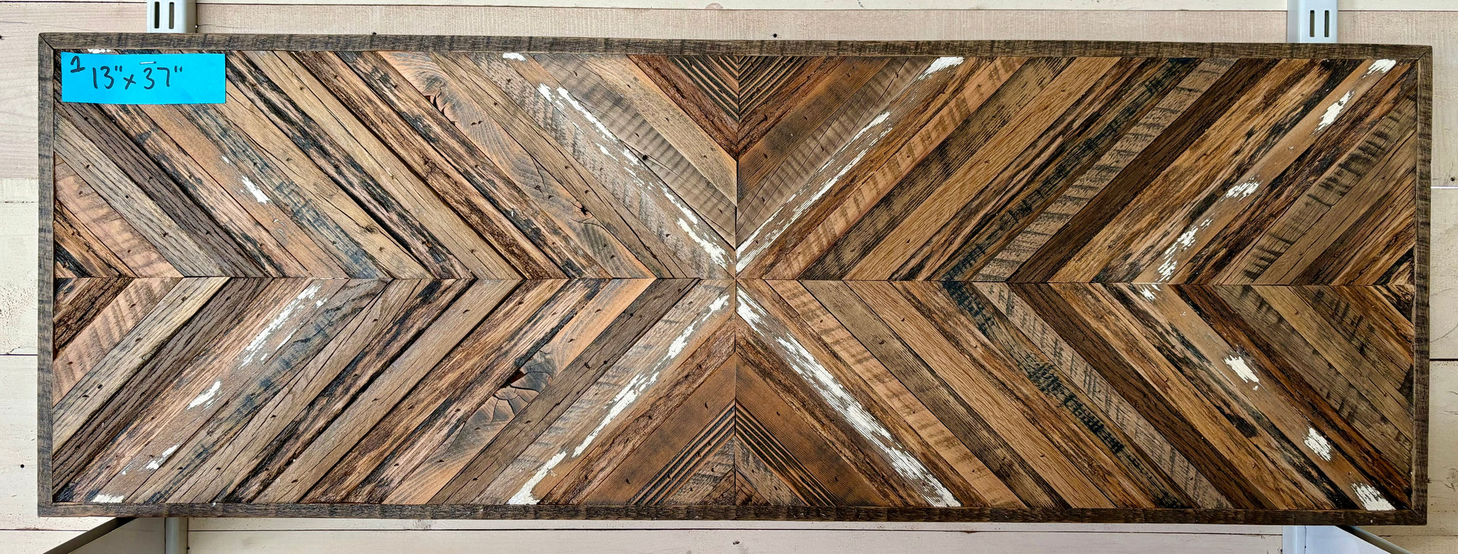 Our Rustic Wood Wall Boards are made exclusively from our Reclaimed lumber. Handmade by our artisan craftsman, each board is one of a kind and has a pattern of soft grey and brown hues from naturally aged reclaimed wood grain in a chevron pattern.