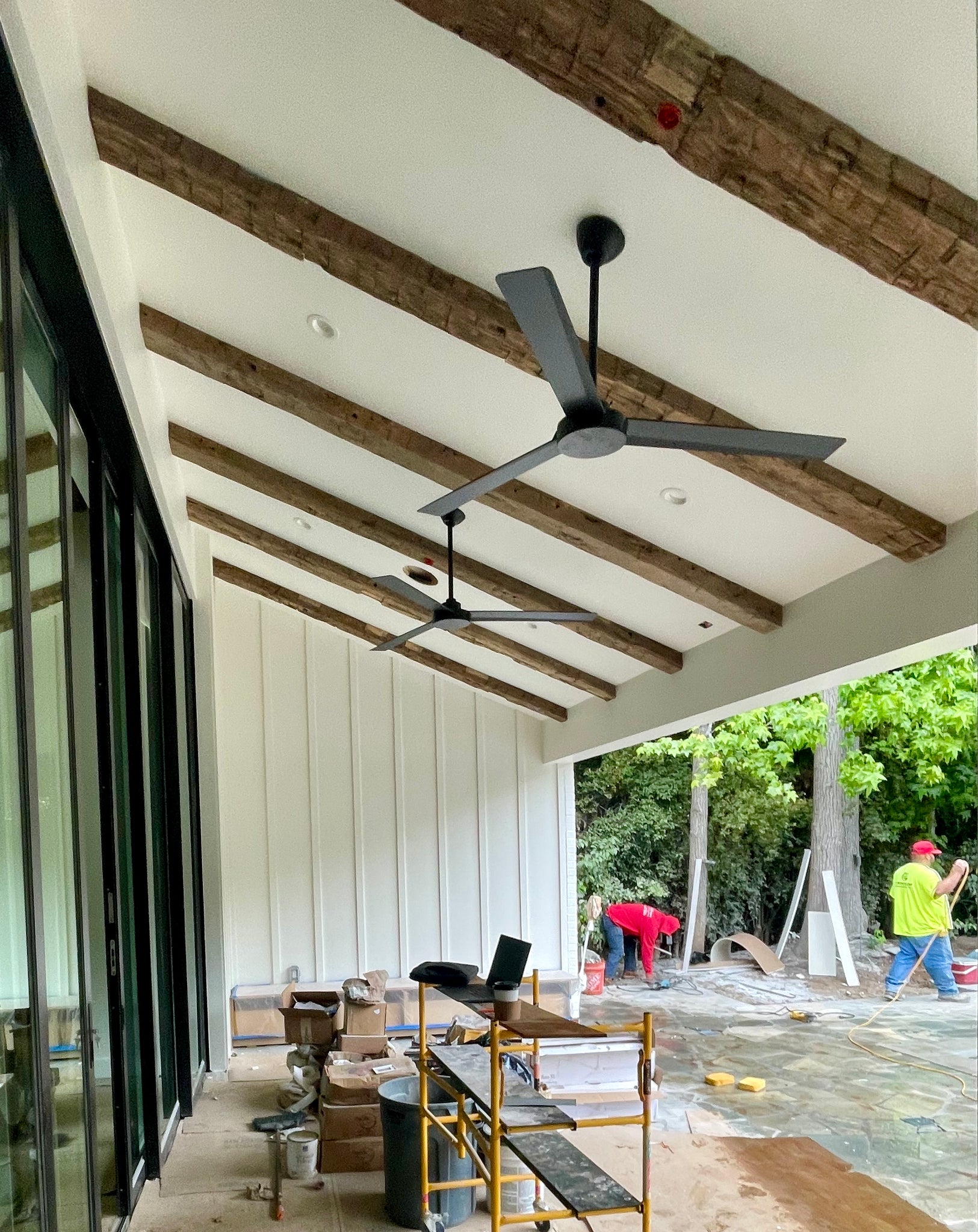 • Load image into Gallery viewer, hand hewn box beams install close up