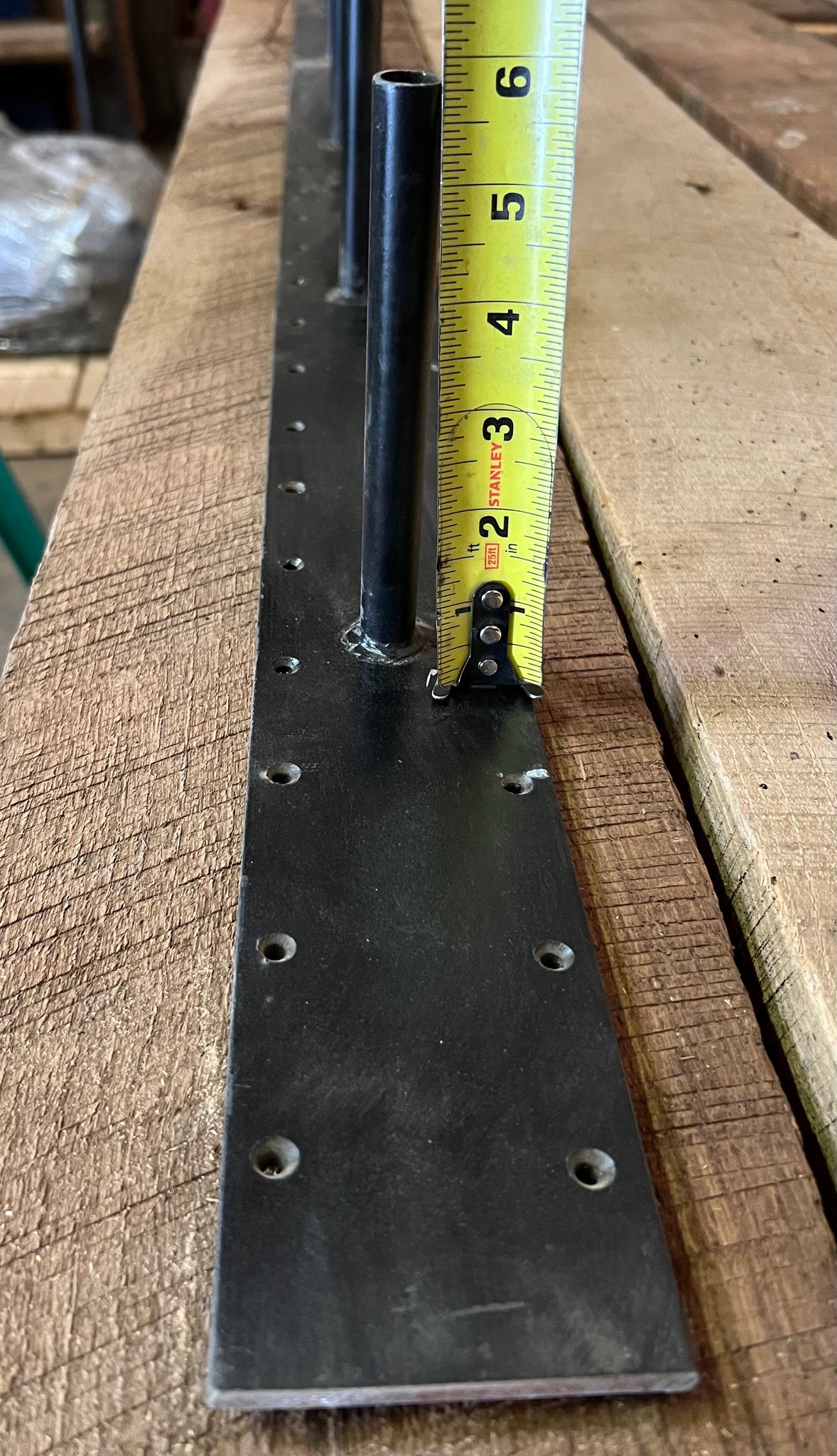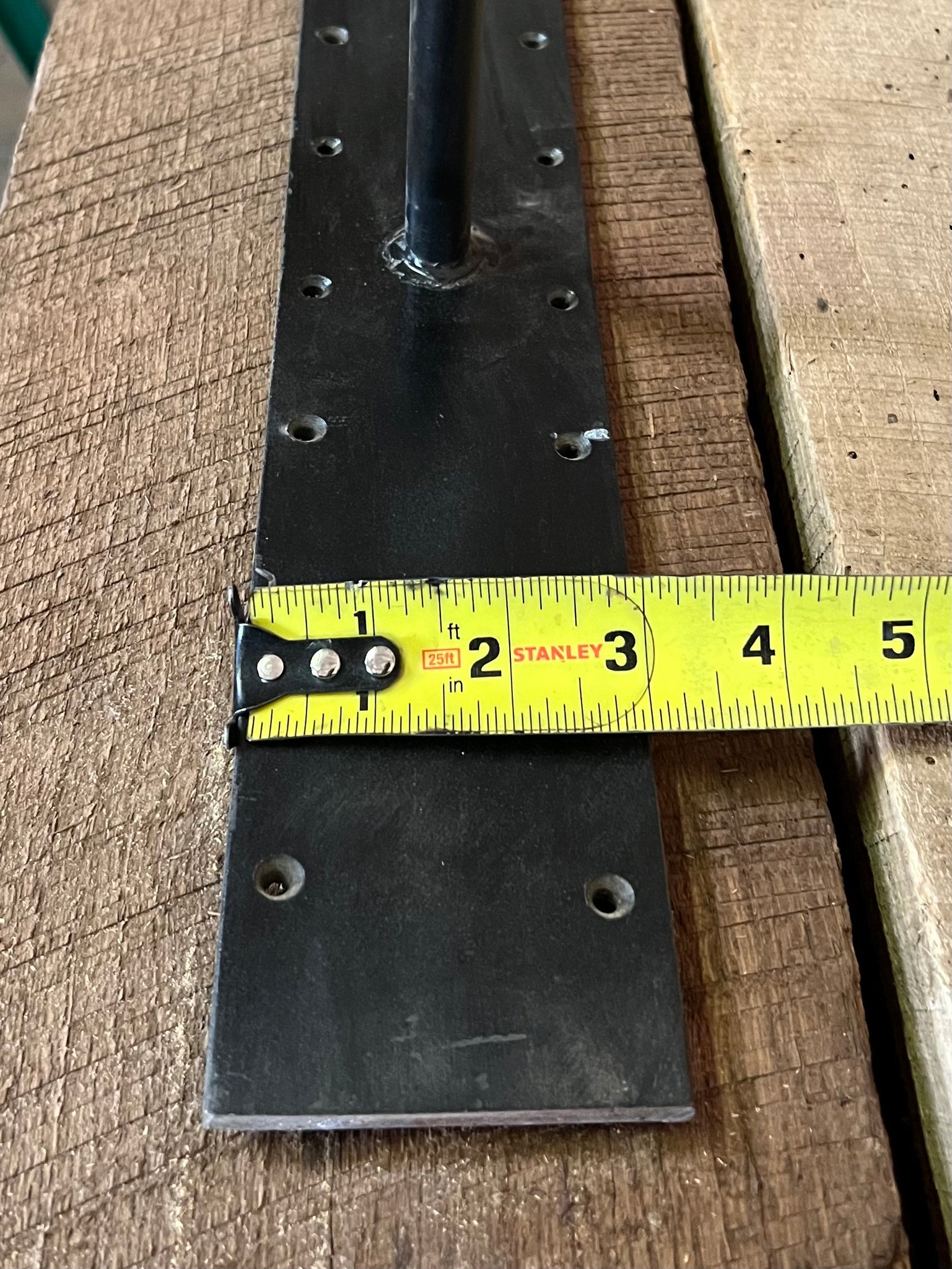 3" wide flat bar x 60" length, with 3 rods at 6" long.